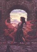 LESSA AND THE WATCHTOWER (Lessa et la Tour de Garde) appelé "Lessa and the Watchwher" dans le calendrier -Taille : ? x ? inches -Prix : $7,000.00 -Acrylic on board -Framed? |