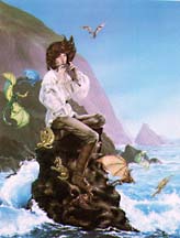 Menolly, une non moins talentueuse disciple du Maître, fut amenée à l'Atelier de Harpe en des circonstances mouvementées. Elle saura pourtant tirer partie de ses dons pour la musique. Elle figure ici jouant de la flute qu'elle a fait elle-même avec des roseaux, entourée par sa troupe de 9 lézards de feu qu'elle a marqués lors de son ancienne vie au Fort de Mer du Demi-Cercle